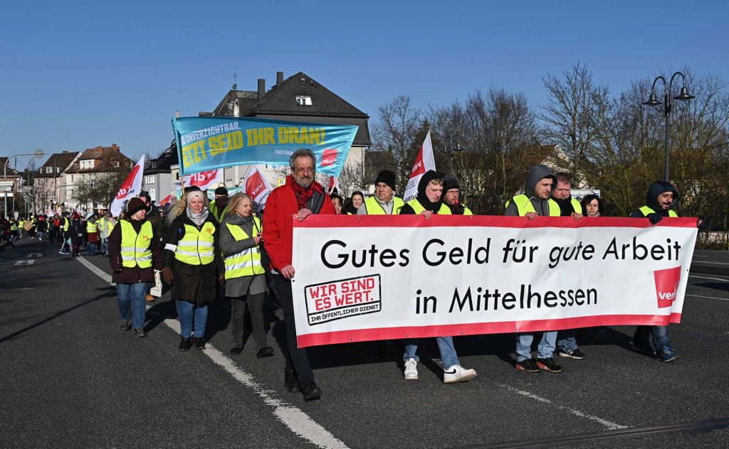 Eine große Zahl von Streikenden aus den Landkreisen Limburg-Weilburg, Rheingau-Taunus und der Landeshauptstadt Wiesbaden machten am 21. März nochmal Druck Ansehen