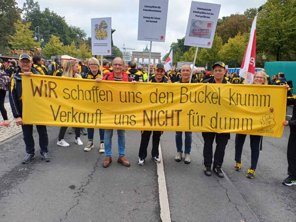 Ganz in Gelb demonstrierten am 9. Oktober 30.000 Postbeschäftigte aus ganz Deutschland in Berlin gegen das geplante neue Postgesetz. Ihre Ansehen