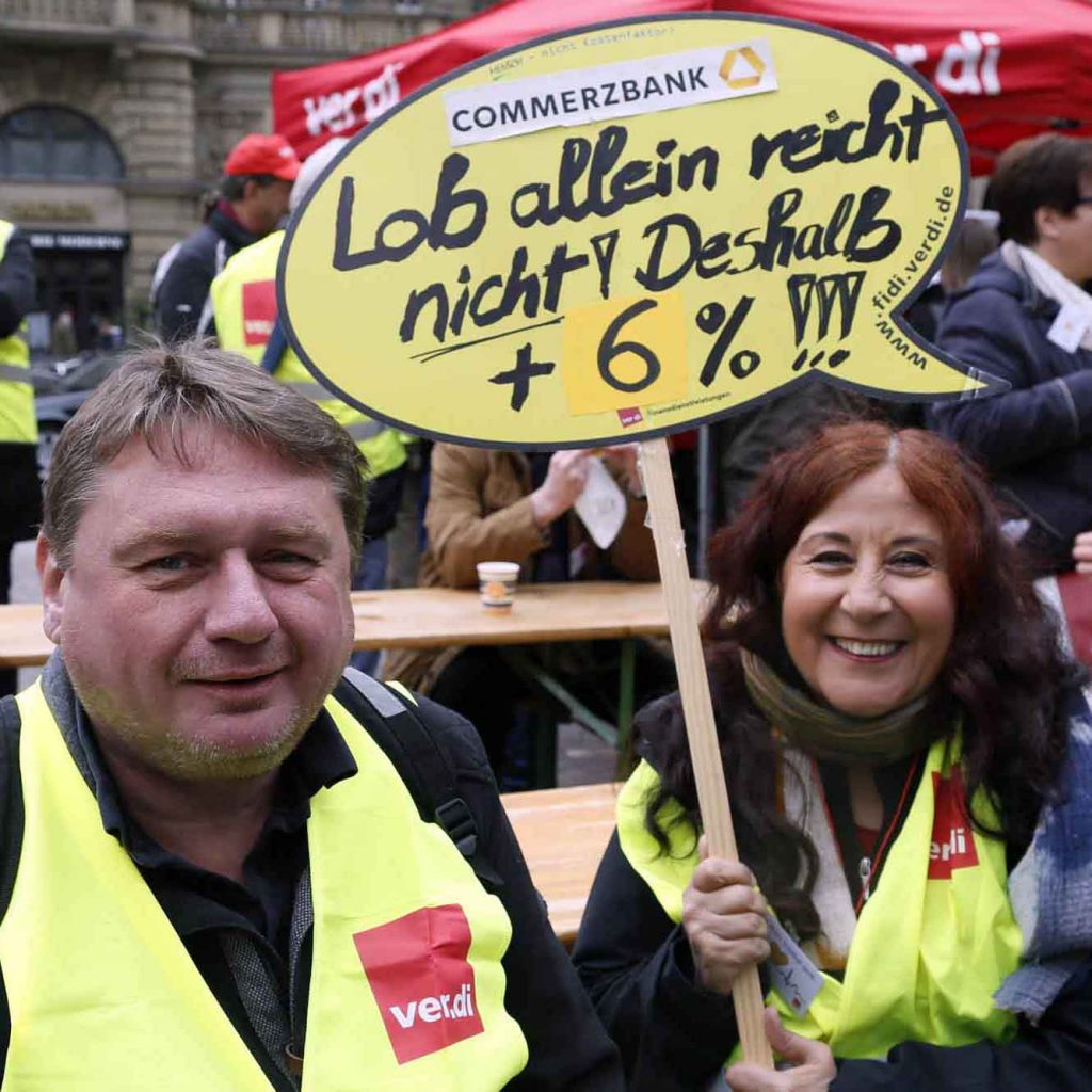 ver.di hat die Beschäftigten von Banken in Frankfurt und dem Umland am 17. Mai vor der vierten Verhandlungsrunde im öffentlichen Ansehen
