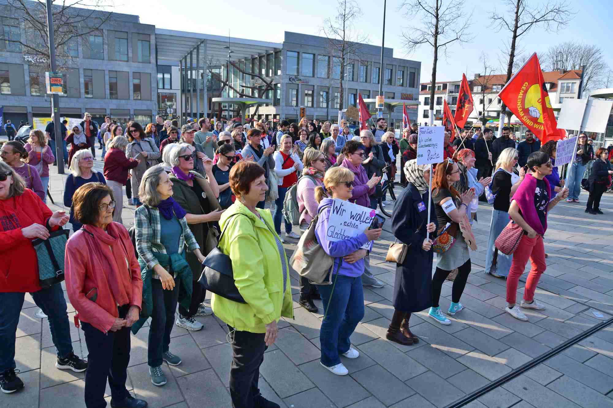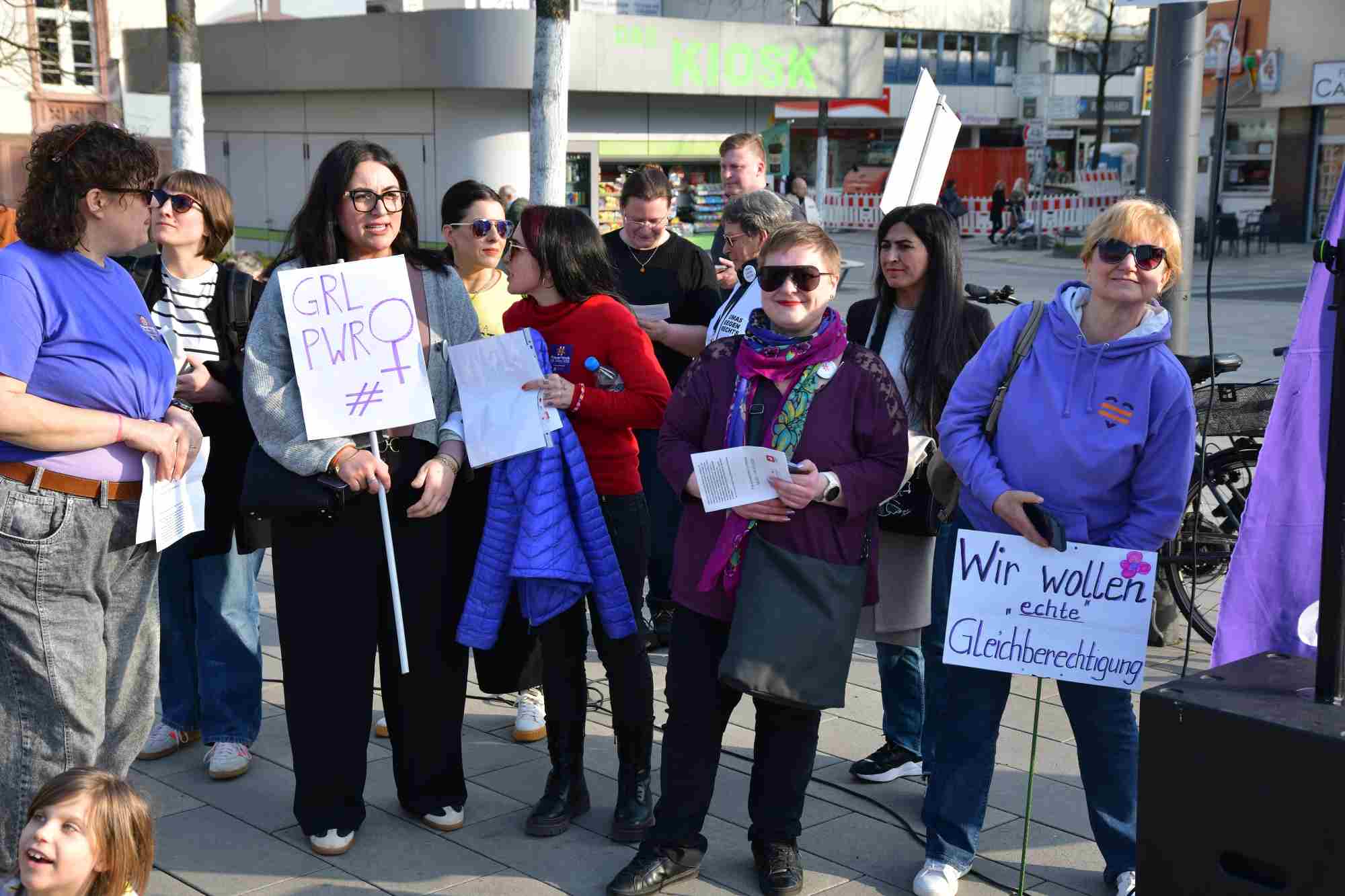 Am Montag, 09. März 2026 fand eine Kundgebung zum Internationalen Frauentag auf dem Freiheitsplatz in Hanau statt. Ein Bündnis von Gewerkschaften und zivilgesellschaftlichen Organisationen, das Frauenbüro Hanau, Frauenhaus Hanau, DIDF Hanau, Omas gegen Rechts, DGB, ver.di, IG Metall, IG BCE, das Töchter/Frauen Kollektiv, hatte dazu aufgerufen.