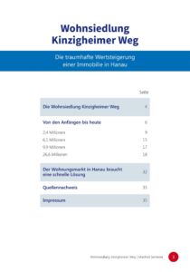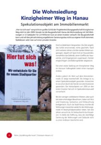 Die Zeit vergeht, das Schild verschwindet, nichts geschieht. Nach zehn weiteren Jahren sind die meisten Mieter ausgezogen, stapelt sich Sperrmüll an Hauswänden, verwahrlost das Gelände, zieren Graffitis die Hauswände, sind Eingangstüren zugemauert, Fenster eingeschlagen und Balkongeländer abgestürzt. Die einst stolze Siedlung am Kinzigheimer Weg im Hanauer Hafengebiet bietet einen traurigen Anblick. Anders jedoch ihr Wert auf dem Immobilienmarkt: Er steigt märchenhaft. Die Anlage ist zu einem Spekulationsobjekt geworden. Inzwischen ist sie schon durch die Hände von drei Investoren gewandert. Der Verkaufspreis von 2009 an den ersten Investor hat sich im Spekulationskarussell vervierfacht.