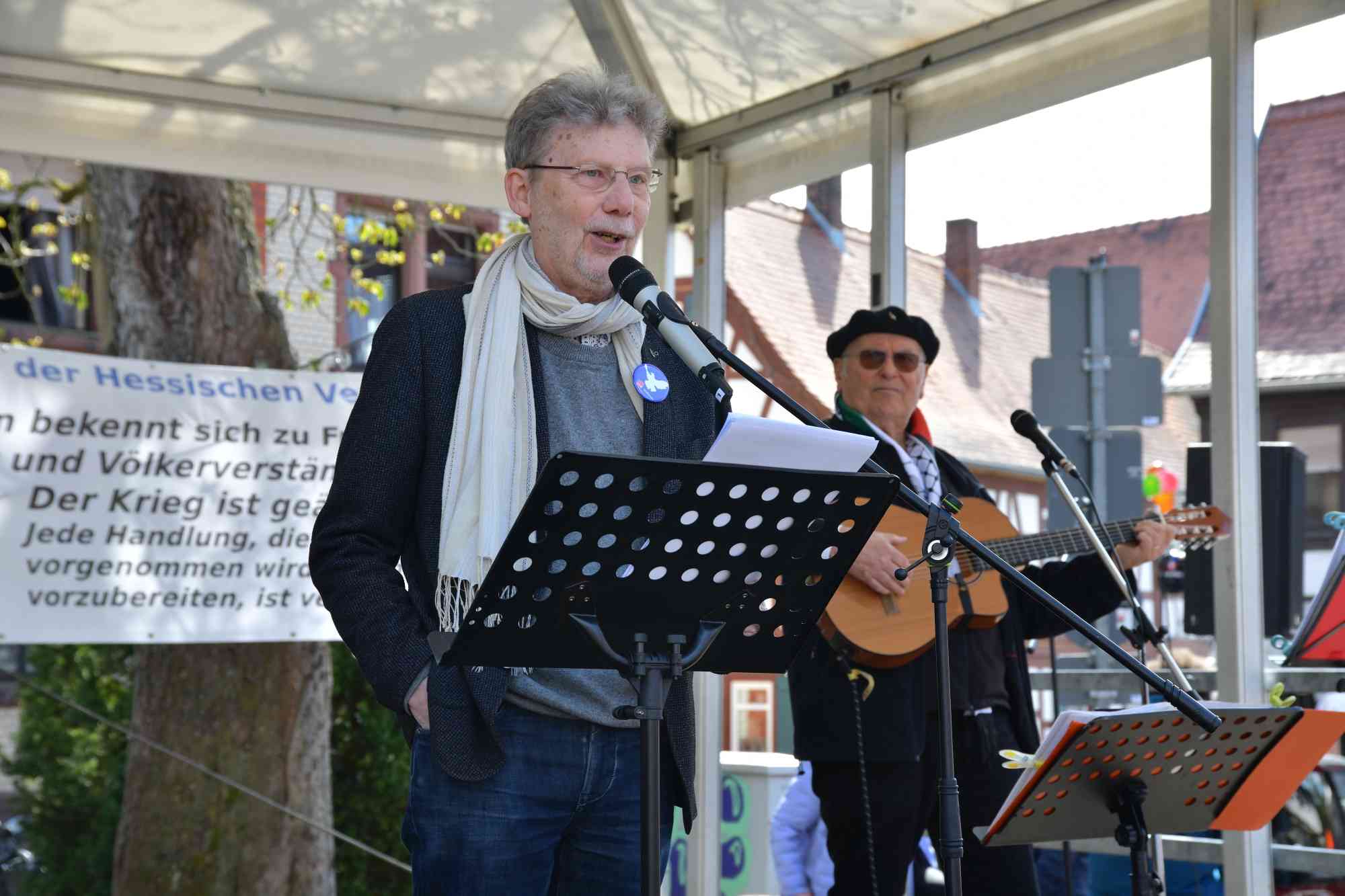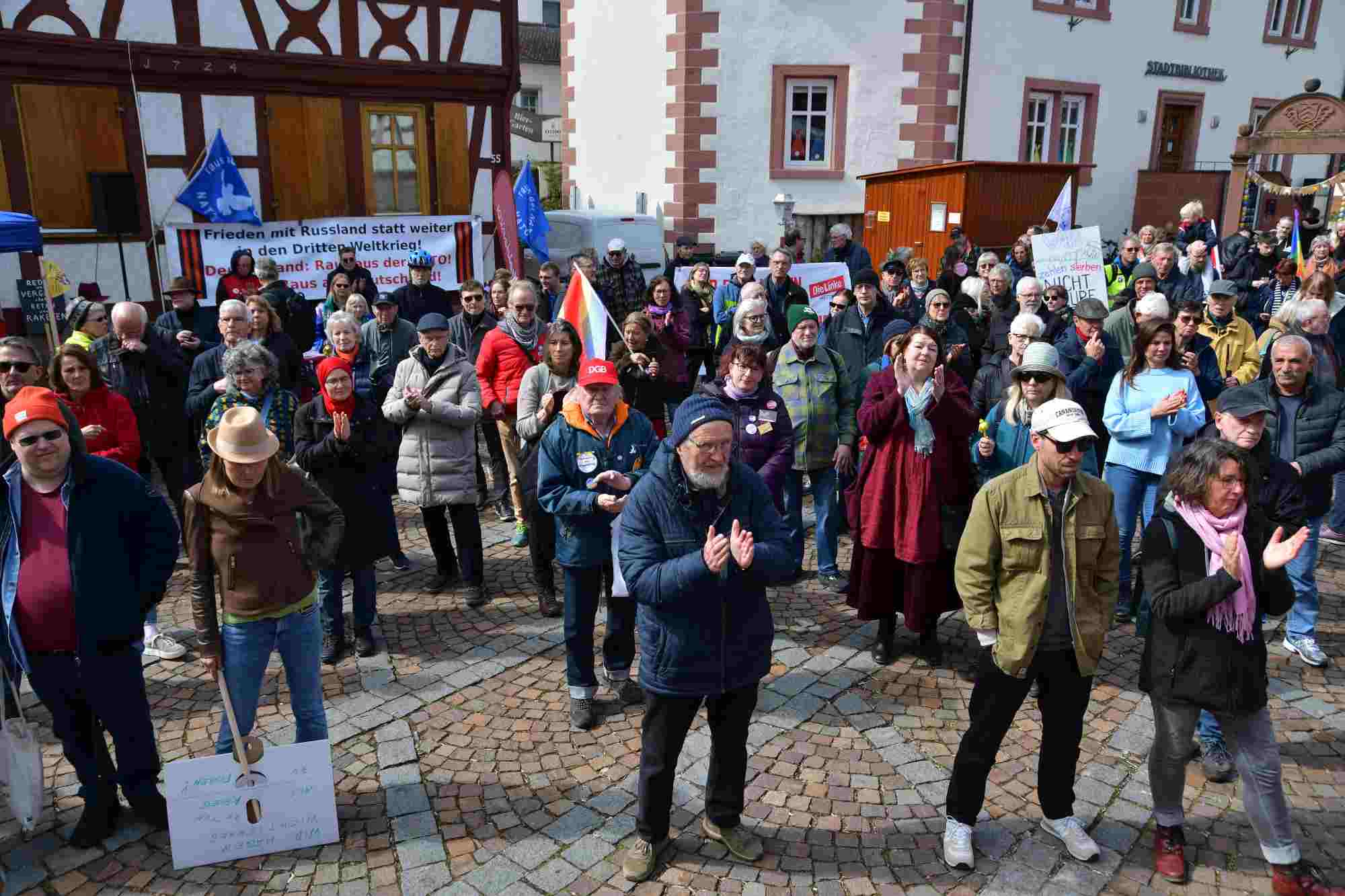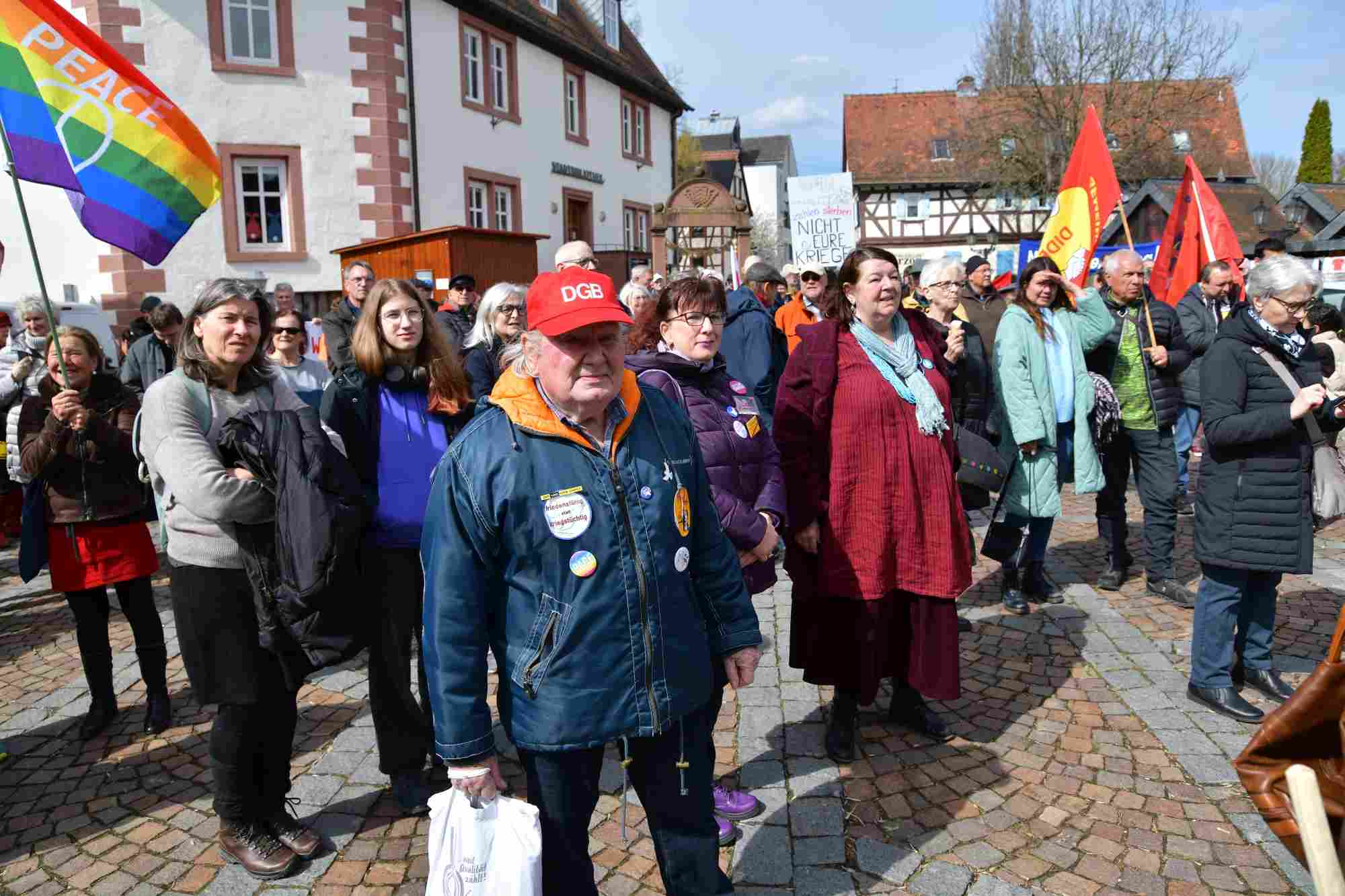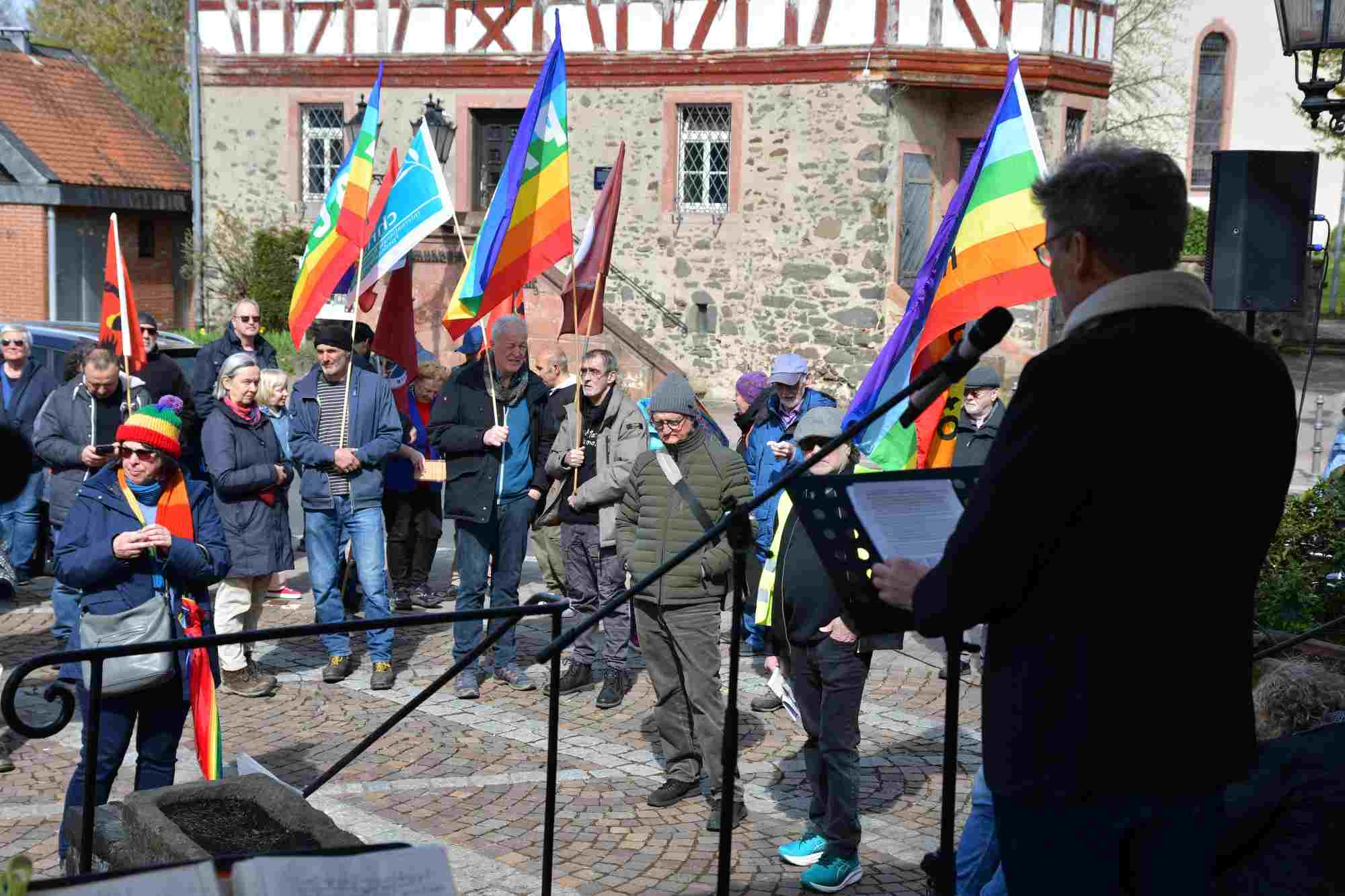 Am Karfreitag, 3. April versammelten sich auf dem Freien Platz in Bruchköbel mehrere hundert Menschen um für Frieden und Abrüstung zu demonstrieren. Aufgerufen zum traditionellen Ostermarsch hatten der DGB Südosthessen, die Hanauer Friedensplattform sowie zahlreiche weitere Organisationen wie die Naturfreunde, Pax Christi, der Internationale Jugendverband und die Aktion Frieden Wetterau. Sie stellen sich gegen Aufrüstung, gegen die Wiedereinführung der Wehrpflicht und dagegen, kriegstüchtig zu werden.
