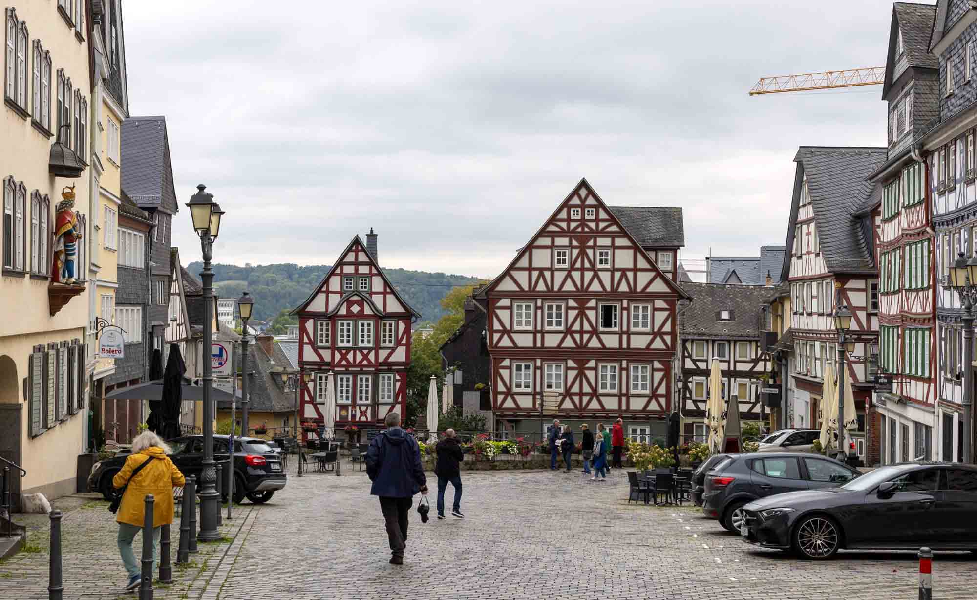 An einem Kanaldeckel bleiben wir stehen, machen Zwischenstopp bei der Erkundung der Altstadt von Wetzlar. Im Jahr 1914 wurde hier das erste Foto mit der Ur-Leica aufgenommen, von ihrem Schöpfer Oskar Barnack höchstpersönlich. Der pittoreske Blick ermuntert uns zur Wiederholung dieses Fotos. Zwölf TeilnehmerInnen aus dem Fototeam Hessen hat die diesjährige Fotoreise nach Wetzlar geführt. Der Eisenmarkt mit dem Fotopunkt ist nur eines der Juwelen im Fachwerkensemble der Altstadt. Vom Ufer der Lahn reiht sich ein Fachwerkhaus nach dem anderen bis hinauf zur Stadthalle. Fotomotive ohne Ende, im Großen wie im Kleinen. Eisenmarkt, Kornmarkt und Dom sind nur drei von vielen Höhepunkten. Rote Punkte auf dem Pflaster weisen uns auf besonders schöne Motive hin. Diese Punkte markieren Stationen des Rundweges vom Leitz-Park in die historische Altstadt. Ach ja, Goethe war natürlich auch hier, nicht an diesem Wochenende, sondern ein paar Jahre früher, hat hier Juristerei und Liebelei „studiert“.