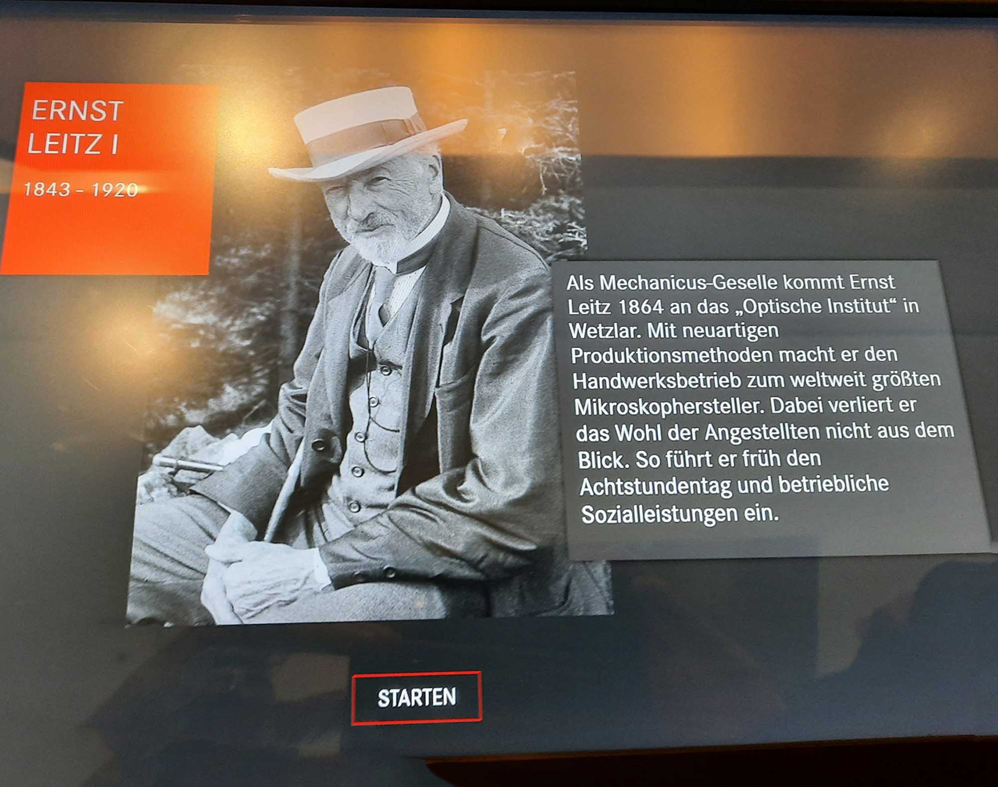 Womit wir schon beim zweiten Teil unserer Fotoreise angekommen sind. Der ganze Samstag ist dem Leitz-Park gewidmet. Der Stadtbus bringt das Gros unserer Gruppe dorthin, ein kleinerer Teil kommt mit dem Auto, biegt am Kreisverkehr mit dem großen Globus von der Landstraße aufs Gelände ab. Im Jahr 2014 bezog die Leica Camera AG hier eine neue Produktionsstätte im großzügig angelegten Leitz-Park. Unser erstes Ziel ist das interaktive Ernst Leitz Museum. Eine Freitreppe führt uns vom großen Foyer in den ersten Museumsbereich. Unser Blick wird von einer überdimensionalen Blende angezogen und die Fotoapparate werden gezückt. Es folgen Technik und Geschichte der Marke Leica. Doch damit nicht genug: Fotostationen laden ein zum Experimentieren und zur Spielerei mit der Kamera. Windkanal, Farbenwechsel, Spiegelkabinett: Es gibt viel auszuprobieren. Abschließend werden wir zu einem Gang durch einhundert Jahre Leica-Geschichte eingeladen. Neben der Zeitleiste ziehen uns auch historische Fotos aus diesen einhundert Jahren an, so manches Foto ist weltbekannt geworden.