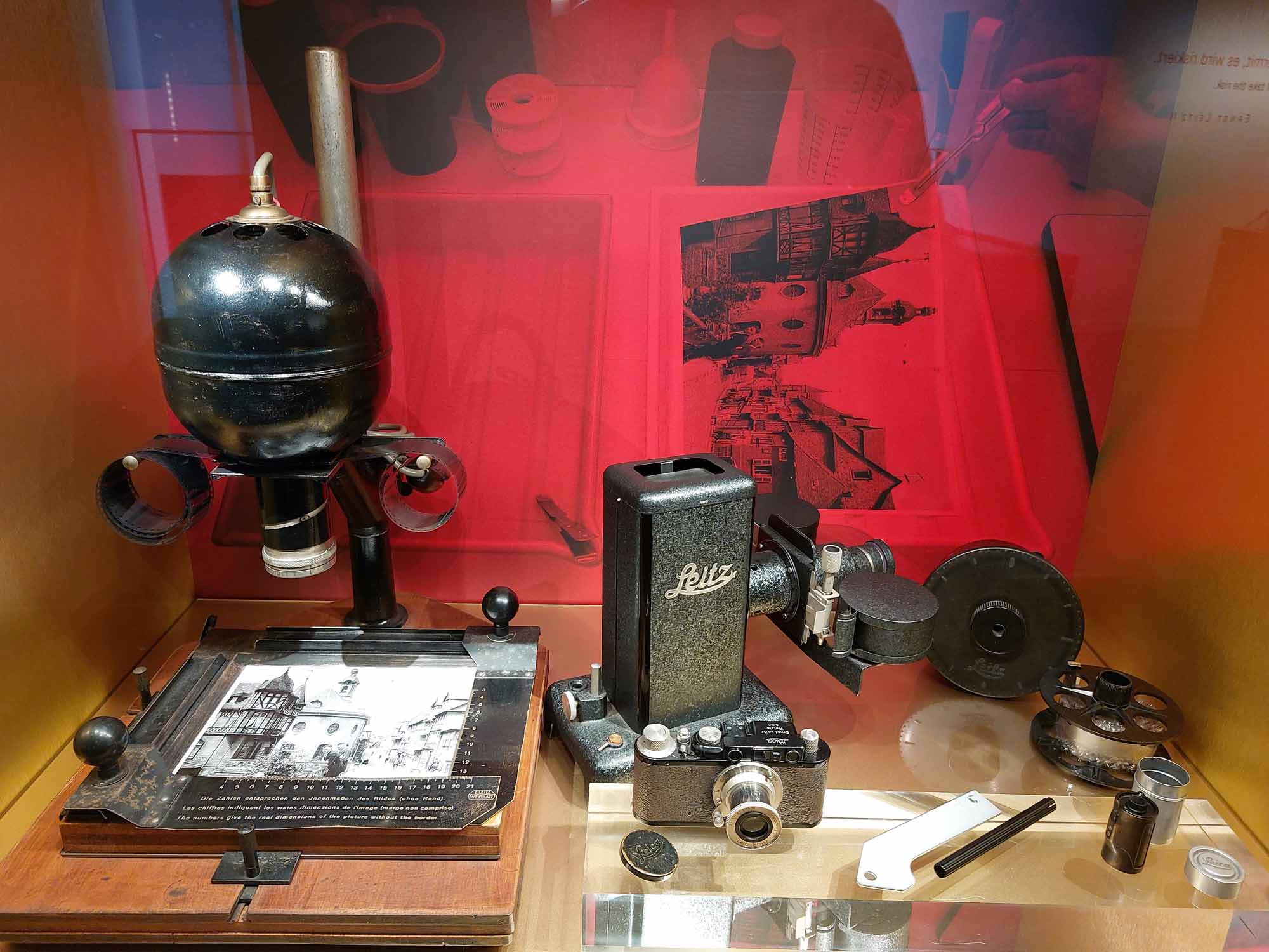 Die Firma Leitz baute Anfang des 20. Jahrhunderts neben Mikroskopen eine Vielzahl anderer optischer Geräte, unter anderem auch Kinokameras. Oskar Barnack, der 1911 als Feinmechaniker in die Leitz-Werke eintrat, entwickelte kurz darauf eine kleine Kamera, die mit einem Streifen des Kinofilms im 35mm-Format bestückt wurde, um die richtige Belichtung für die Aufnahme zu testen. Da ihm als Fotoamateur für Naturfotografie die klotzigen Fotoapparate zu schwer waren, entwickelte er aus dem oben geschilderten Modell eine kleine Kamera mit Filmen im 24x36mm-Format. Damit war die Kleinbildkamera geboren. Es dauerte jedoch aufgrund des Ersten Weltkrieges und der Nachkriegszeit noch bis zum Jahr 1925, bevor die Ur-Leica auf den Markt kam. Das war damals ein hohes wirtschaftliches Risiko, das sich jedoch schnell als Geniestreich herausstellte. Wer heute die Fotoapparate aus der Zeit vor der Ur-Leica sieht, fragt sich, warum die Kleinbildkamera nicht schon viel früher erfunden worden war.