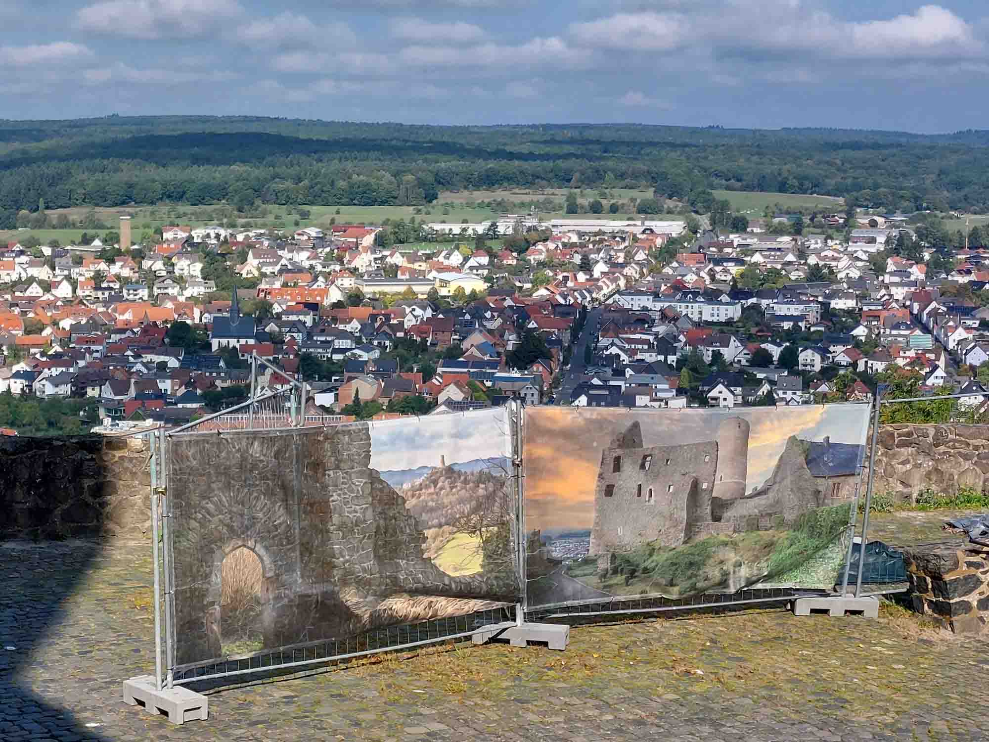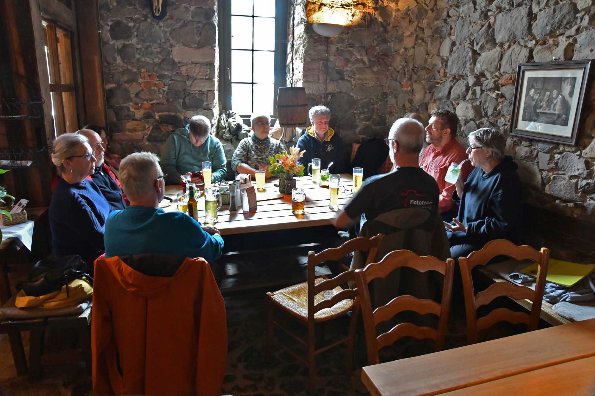 Mit einem großen Dankeschön an Siegfried Jaedike verabschieden wir uns zur Mittagszeit und fahren weiter zur Burg Gleiberg. Steil führt die Straße durch Krofdorf bis zur Burganlage hinauf. Langsam hebt sich der Nebel und gibt den Blick auf die sonnige Landschaft frei. Bei einem gemeinsamen Mittagessen im Burgrestaurant findet unsere diesjährige Fotoreise ihren Abschluss.