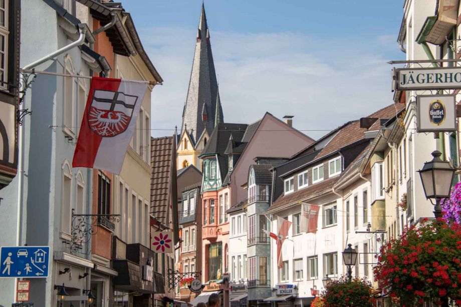 Sonntag Morgen in Ahrweiler. Durch das beeindruckende Ahrtor schlendern wir in die Altstadt. Eine geschlossene Stadtmauer schnürt sie ein. Mit Eis schleckenden Touristen ziehen wir am Morgen durch die alten Gassen. Auch Ahrweiler bietet Fotomotive ohne Ende. In den beiden Straßen, die von den Stadttoren zum Zentrum, dem Marktplatz, führen, reihen sich Fachwerkhäuser aneinander. Aber auch steinerne Zeugen aus den Jahrhunderten zwischen Mittelalter und der Neuzeit zeigen uns allerlei Baustile. Selbst die Jugendstil-Epoche ist vertreten. Ahrweiler ist, zumindest in diesen Straßen, aufgehübscht. Rote Geranien an den Straßenlampen bringen noch mehr Farbe ins Stadtbild. Rot macht sich auf Fotos immer gut. In den Seitengassen ist es weniger schmuck, aber das lässt sich angesichts der Pracht der zum Herz der Stadt führenden Straßen leicht übersehen. Langsam füllen sich die Tische der zahllosen Cafés fürs zweite Frühstück, aber bitte ohne Sahne, der Kalorien wegen. Um die Mittagszeit füllt sich das Herz der Stadt, der Marktplatz, immer mehr. Wer jetzt keinen Platz im Restaurant reserviert hat, muss sein Picknick auf der Parkbank einnehmen. Der Akkordeonspieler auf dem Platz lässt zu der Blumenpracht „Bella Ciao“ erklingen. Ob alle Zuhörer wissen, dass es ein altes Lied im Kampf gegen den italienischen Faschismus ist? Viele Münzen fallen in seinen Hut. Die Sonne hat heute dazu ihr schönstes Lächeln aufgesetzt. Der Sommer verabschiedet sich in bester Laune und wir auch.