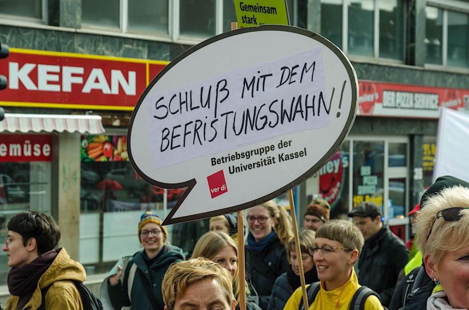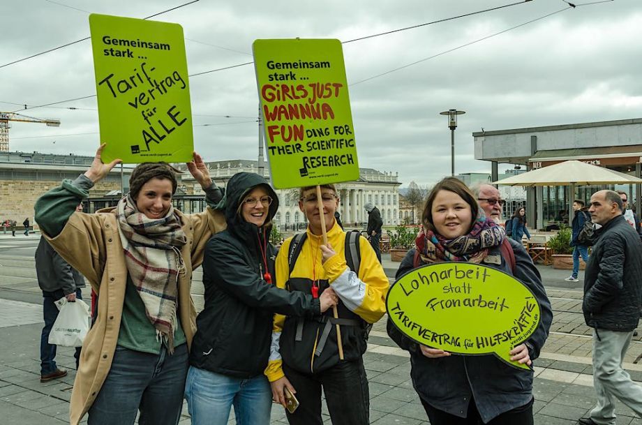 Am Dienstag, den 26.3.19 haben insgesamt 2800 Beschäftigte des Landes Hessen ihrer Forderung nach 6% mehr Lohn, mindestens 200€ und Erhöhung der Ausbildungsvergütungen um 100€ Nachdruck verliehen. Beteiligt haben sich auch die wissenschaftlichen Hilfskräfte der hessischen Universitäten, die für eine Aufnahme in den Tarifvertrag sowie die Begrenzung der Befristungen kämpfen.