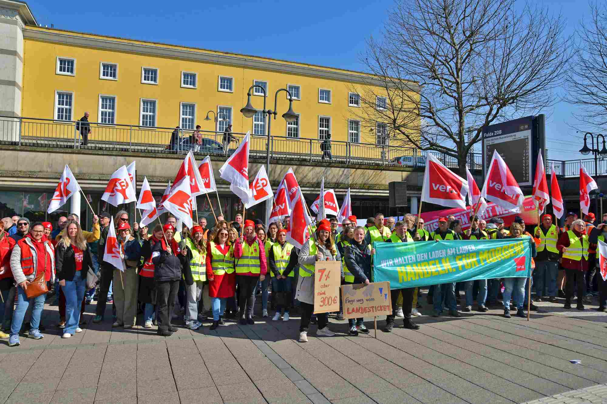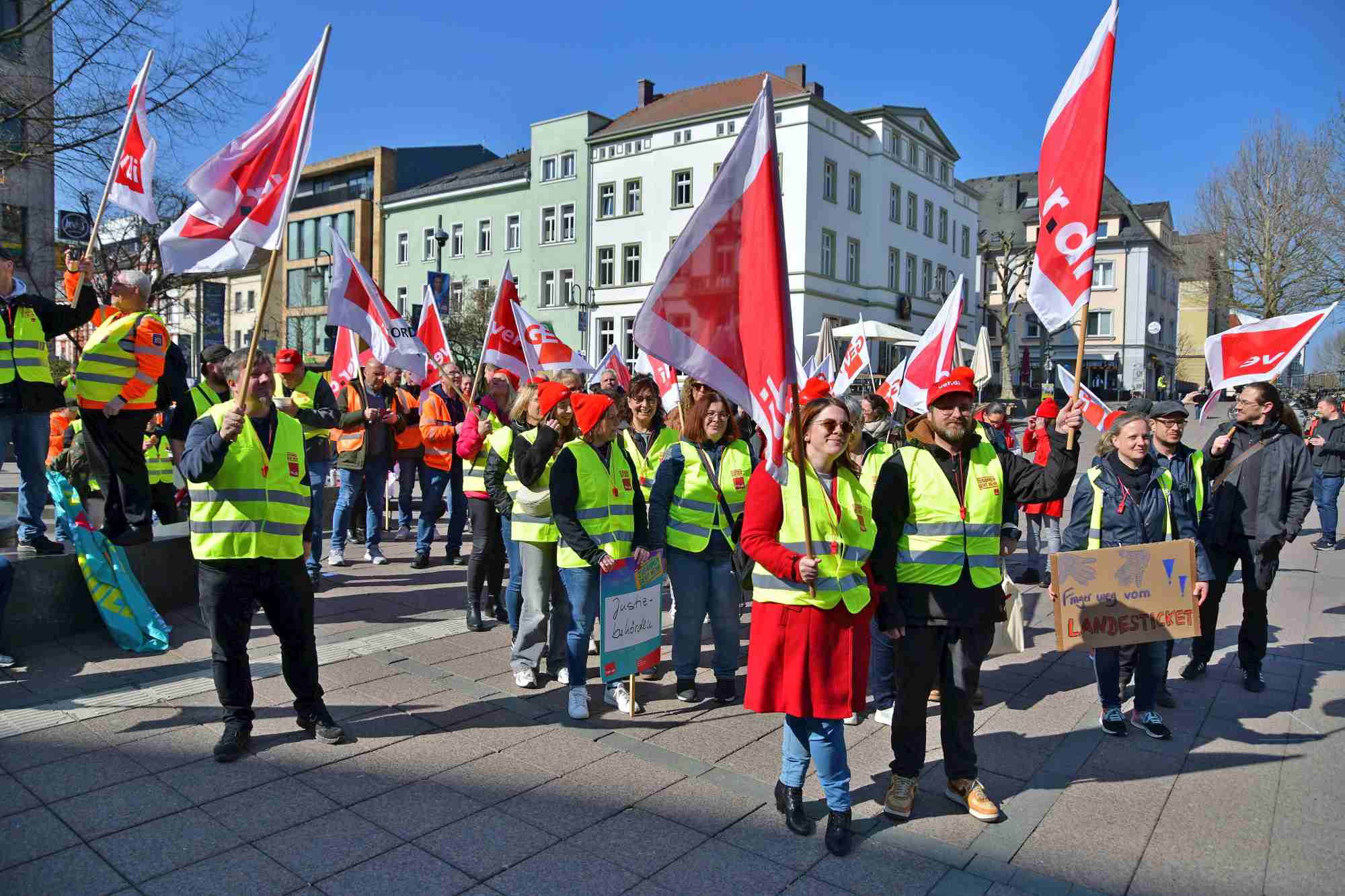 Die Beschäftigten gehen für die Tarifforderungen auf die Straße