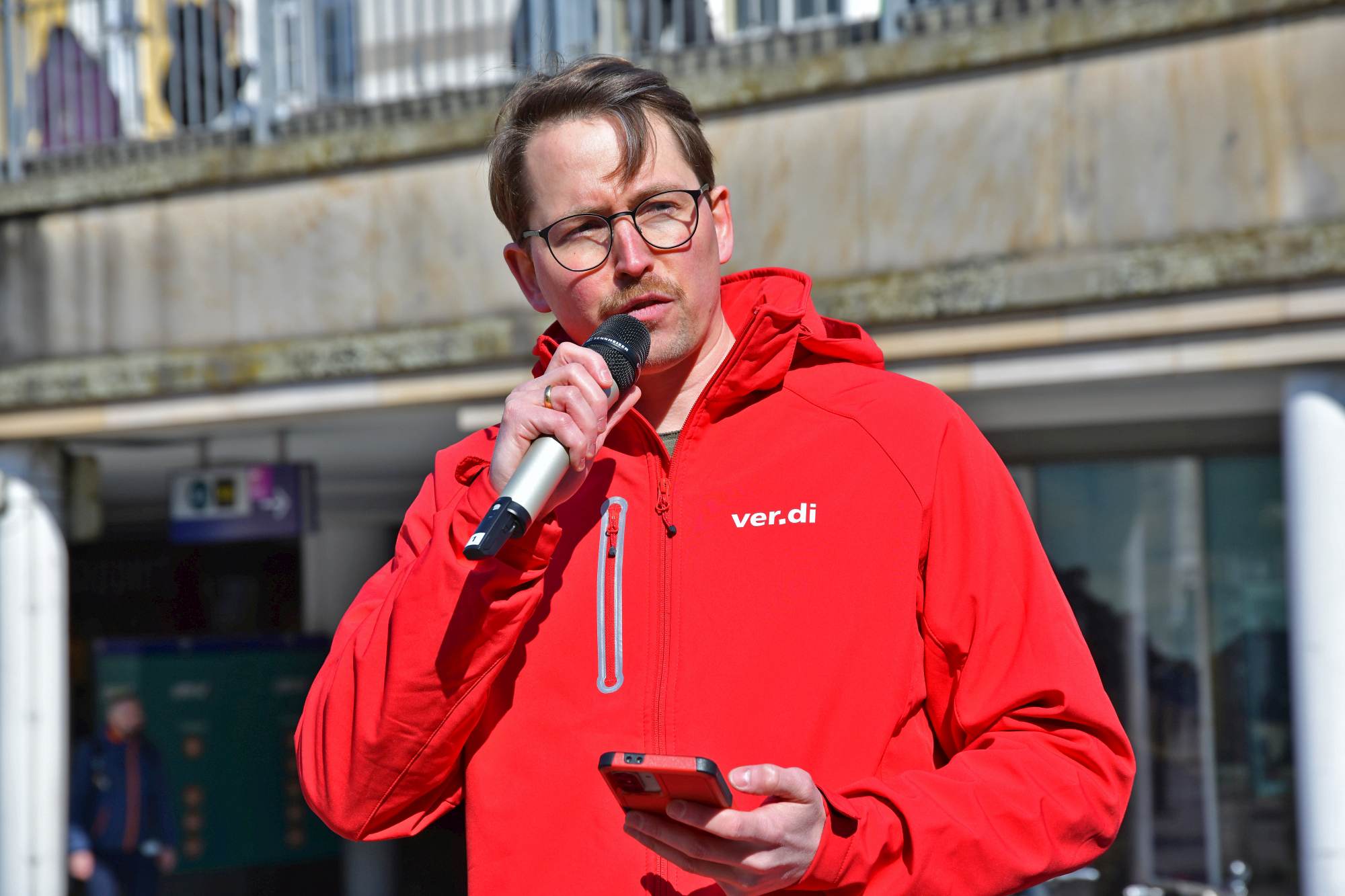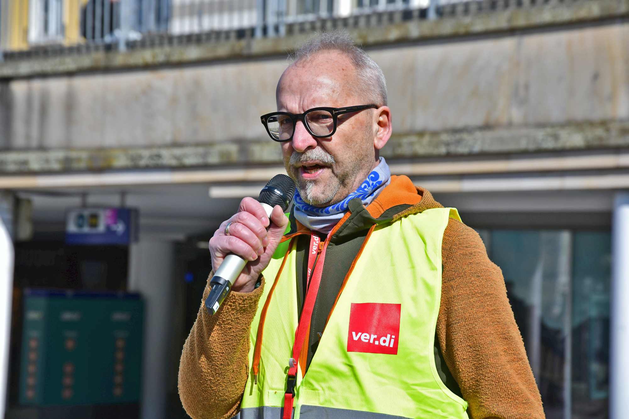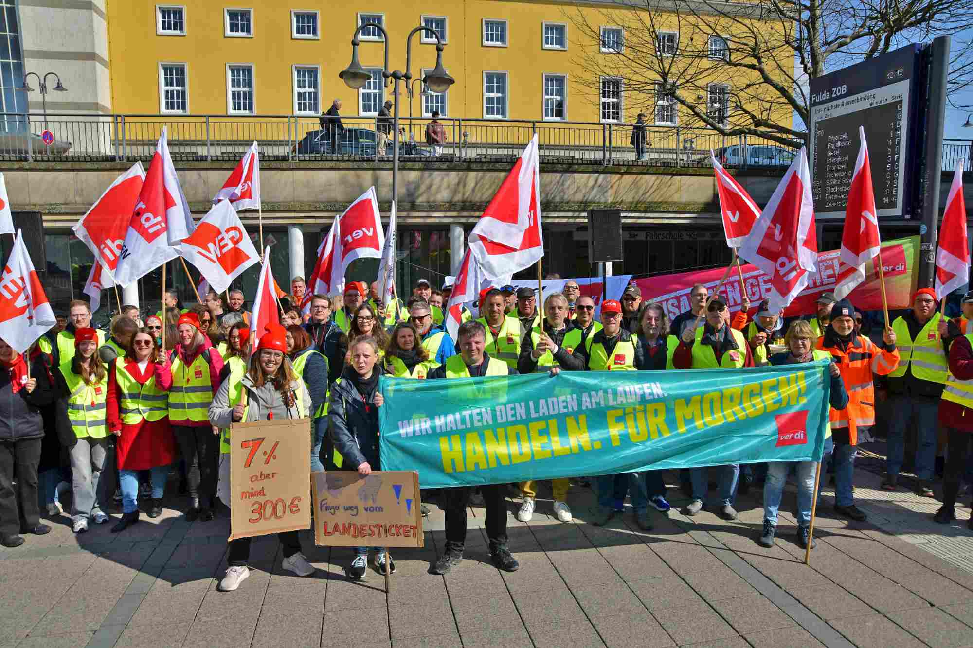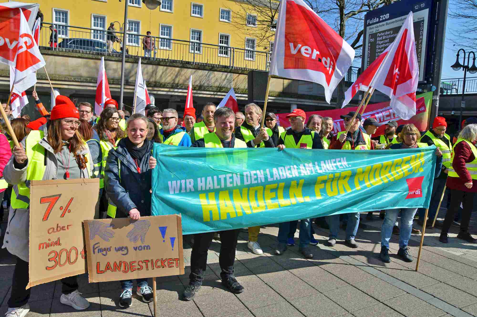 Warnstreik am 18.03.2026 in Fulda Nach einer enttäuschenden zweiten Verhandlungsrunde rief ver.di die Landesbeschäftigten in Osthessen zu einem Warnstreik auf. Ca. 150 Kolleginnen und Kollegen rund um Fulda folgten dem Aufruf. Egal ob Beschäftigte von Hessen Mobil, der Hochschule, dem Amtsgericht oder einer der vielen anderen Landesdienststellen. Alle sind sich einig, dass eine Anerkennung ihrer Arbeit vom Arbeitgeber erfolgen und ein ordentliches Lohnplus für sie erfolgen muss. Die Redner:innen berichteten über die Abschätzigkeit und mangelndem Respekt ihnen gegenüber. Außerdem wurden ihre Forderungen in der zweiten Runde fast gar nicht besprochen. Sie erwarten jetzt, dass das Land sich jetzt bewegt und machen Druck auf der Straße.